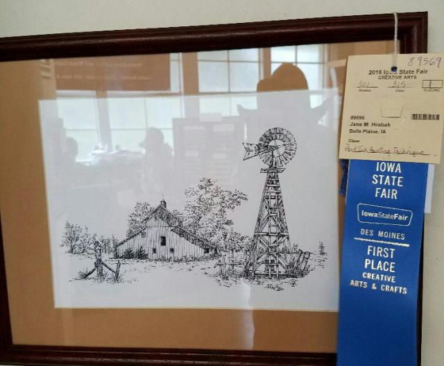 In addition to the Concrete 2nd Place, Hrabak took home a First Place prize for Pen & Ink Drawing Technique, and she grabbed a third place win in the Creative Arts & Crafts division for a wreath fashioned from wine corks .
