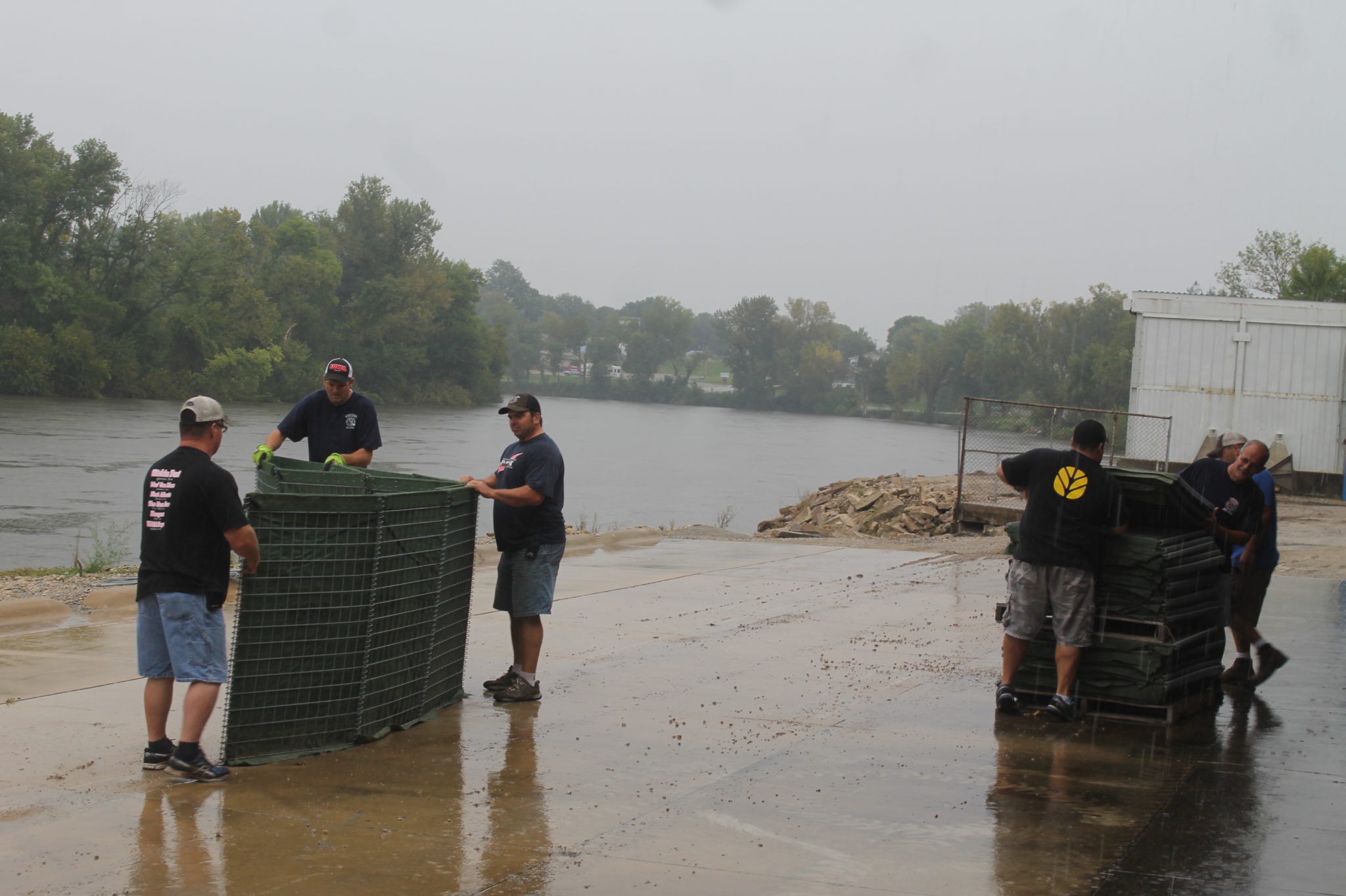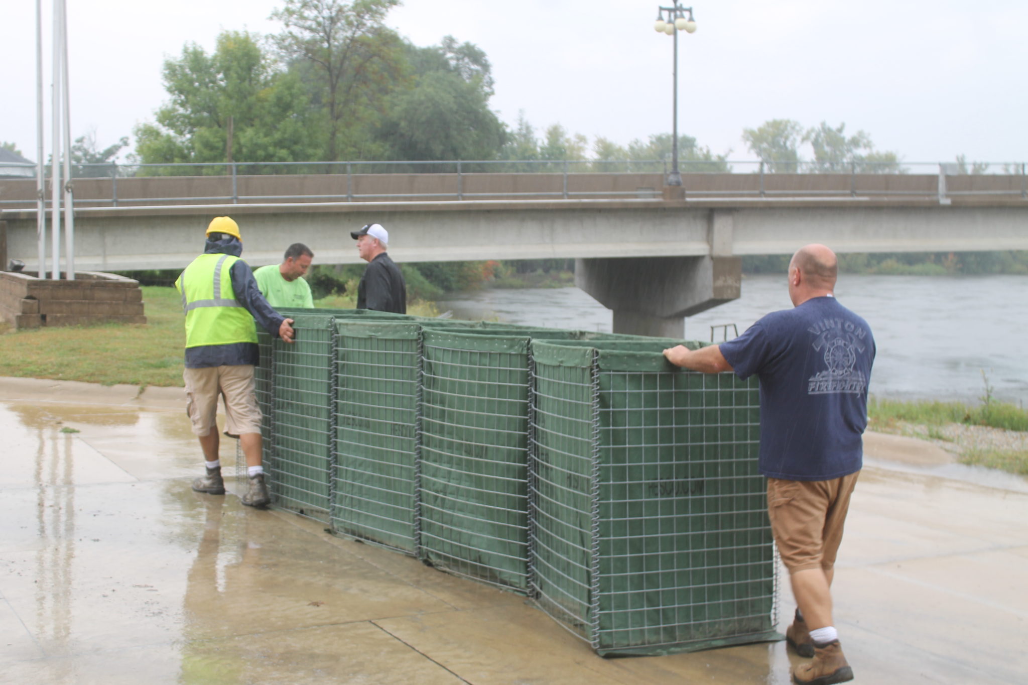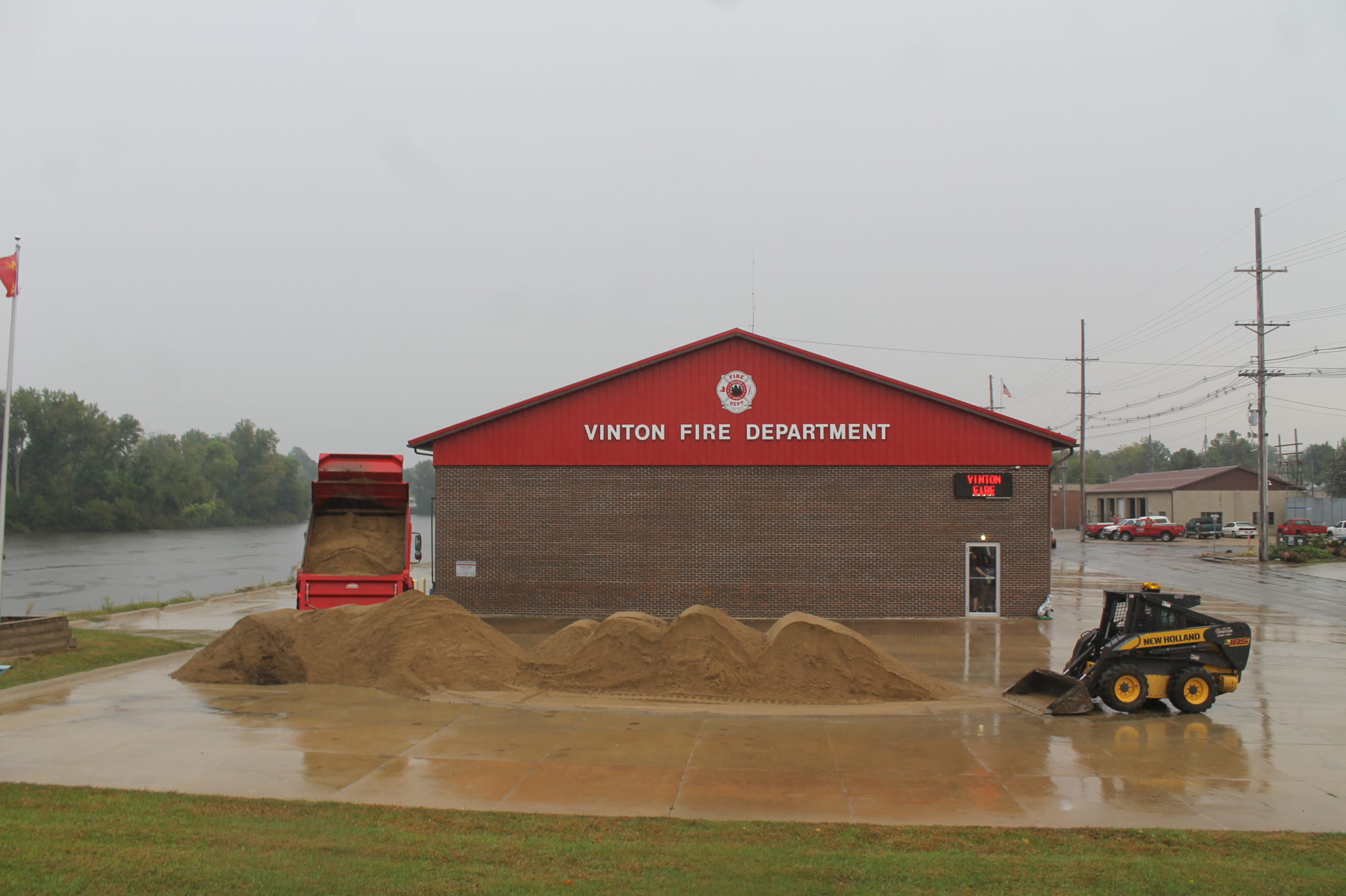 Members of the Vinton Fire Department have begun setting up and filling the Hesco sand-filled flood barriers around the fire station, and employees of VMEU are also taking steps to protect Vinton's elecric utility from flood damage.