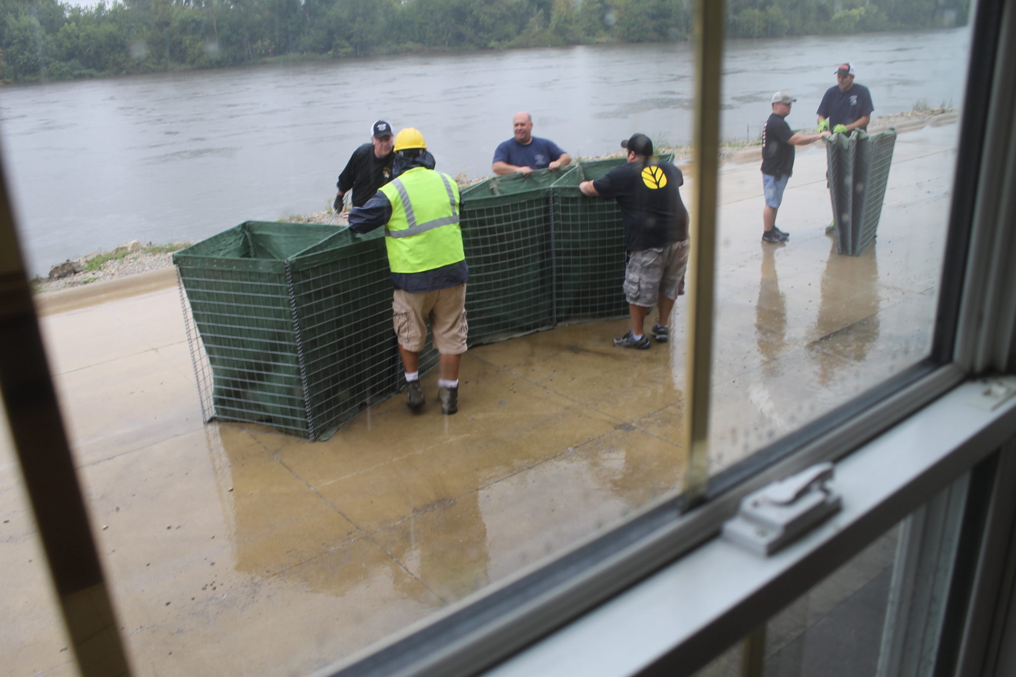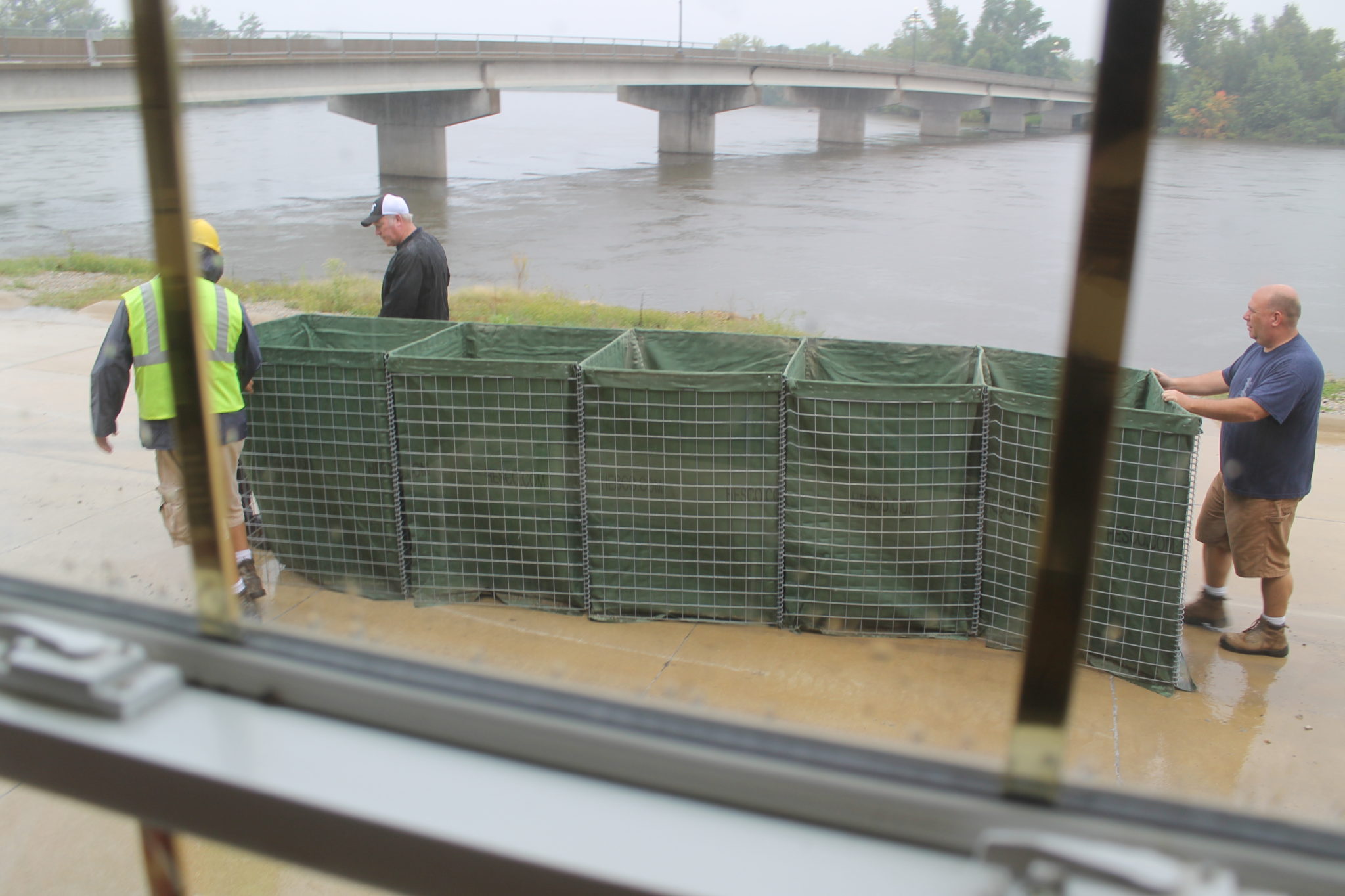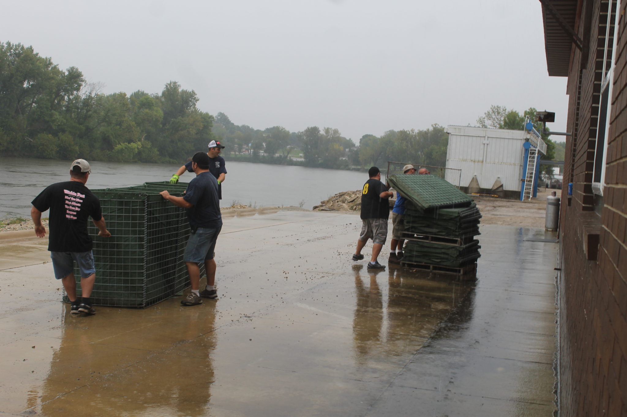 Members of the Vinton Fire Department have begun setting up and filling the Hesco sand-filled flood barriers around the fire station, and employees of VMEU are also taking steps to protect Vinton's elecric utility from flood damage.
