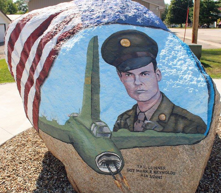 The Benton County Freedom Rock - located just east of the Shellsburg Legion Hall - represents men and women we know much about - like the three mentioned above. Painted by Ray "Bubba" Sorenson II, the rock represents men like those mentioned above as well as every local veteran whose name we have never heard. It honors each man or woman who put on a uniform, completed basic training, and was shipped across the country or across the ocean to a far-off locale to help keep the rest of us safe at home.