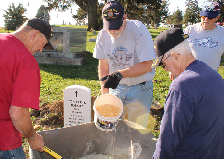 Jeff had to find and submit the proper forms in order for Don to be honored with a military tombstone. That process finally complete, Jeff gathered with the veterans to set the stone, which includes Don's dates of service as well as a Presbyterian Cross. The stone also mentions his wife, Barbara, but because of federal guidelines, Jeff will have to add her date of birth and death later. Both Don and Barbara were cremated, and are buried in one plot.