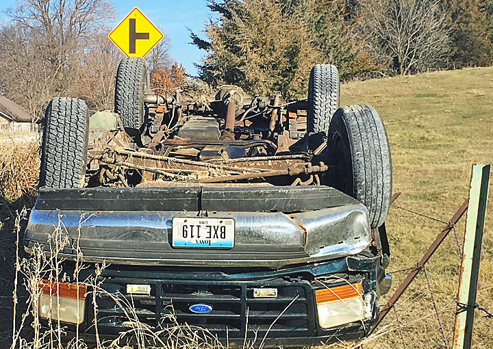 On Tuesday, the Benton County Sheriff's Office was alerted to a pick-up that had rolled into the ditch on 24th Avenue Drive, about a mile north of Minne Estema Park. Nobody was found in the vehicle. Later on Wednesday morning, traffic on 24th Ave (Highway 218) near the Van Horne/Newhall corner was tied up after a minivan collided with a fork lift, causing damage to both vehicles.