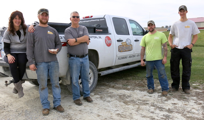 Edwards Plumbing and Heating staff grabs lunch as a thank you for their assistance in retrofitting the new Lions concession trailer. From left, Leah Edwards, (Lion) Nate Edwards, Bryan Edwards, Matt Clevenger and Stephen Kalina.