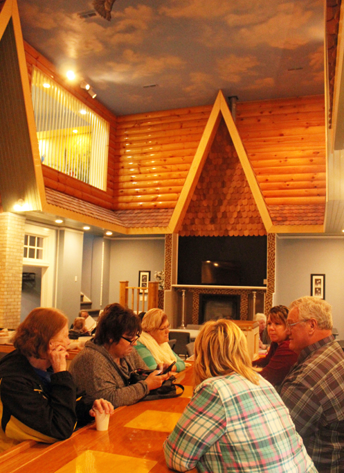 Revolution Church recently held an open house to celebrate the renovation of what most recently had been the Cafe de Klos. While some of the restaurant space had to be removed to make room for the sanctuary area, meeting rooms and the stairwell leading upstairs, church organizers worked hard to create a church facility that retained as much as possible of the feel of the building's restaurant days. The ceiling painted by Brian Parr remains the same, and the front area looks much like it did when residents stopped for dinner.