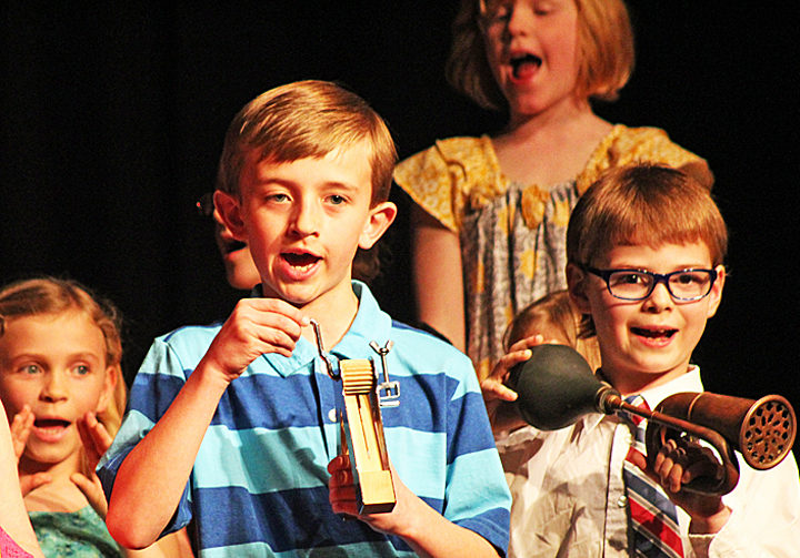 Instruments for the Tilford 2nd grade concert included a horn from an antique car which Mr. Ziemer received from an uncle.