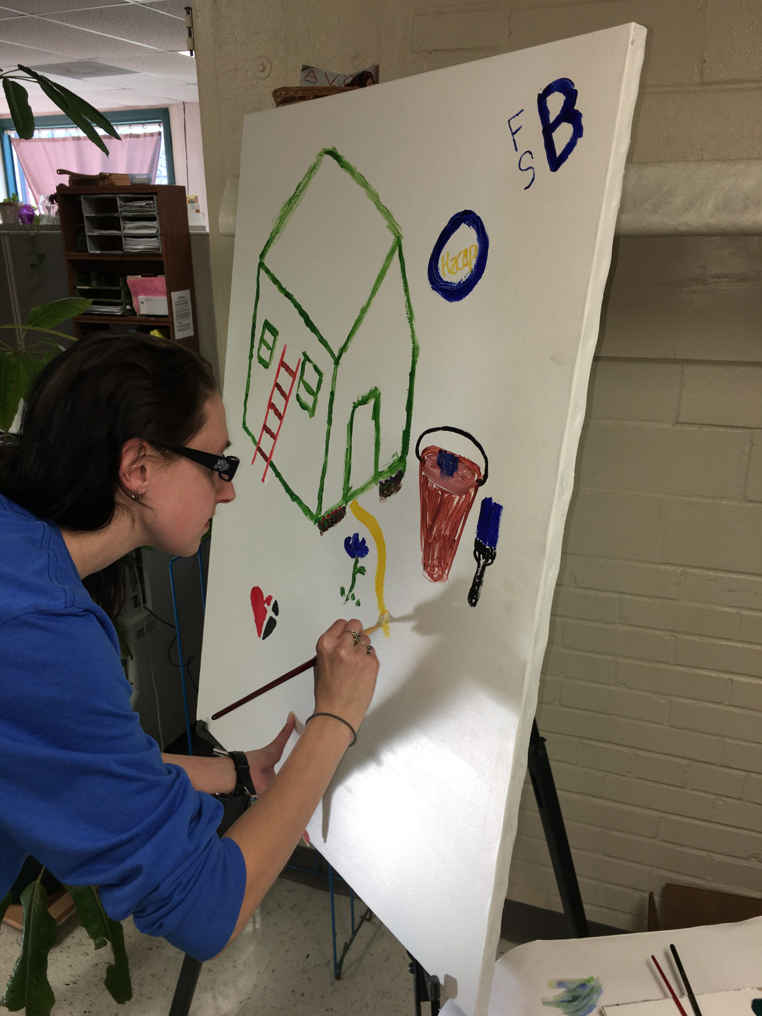 Participants took turns painting a house on a white board, sharing information and asking questions about the Habitat for Humanity's Brush With Kindness open house last week.