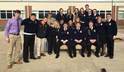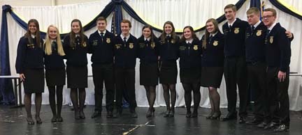 Left to Right Back Row: Riley Bateman, State President Elisa Russ, Morgan White, Kaylee Sorum, State "North Central Vice-President Cully Forsyth, Madison Novotny, Brianna Lundvall. Front L to R: Brock Ortner, Grant Ries, George Haefner, Ethan Horak, Bree Tharp, Kenyatta Yarbrough, Eric Henkle, Shelby McDonald, Erin Cantrell, Isaac Wiley, Drew Wiley, State South East Vice-President Savannah Keitzer, and State Secretary Chase Kusel.
