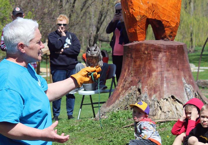 Children (and adults) sat captivated as they watched raptor exports hold and discuss an owl and a hawk. Other children (and adults) worked to make the bike trails near Riverside Park better places for bicyclists of all ages to enjoy.