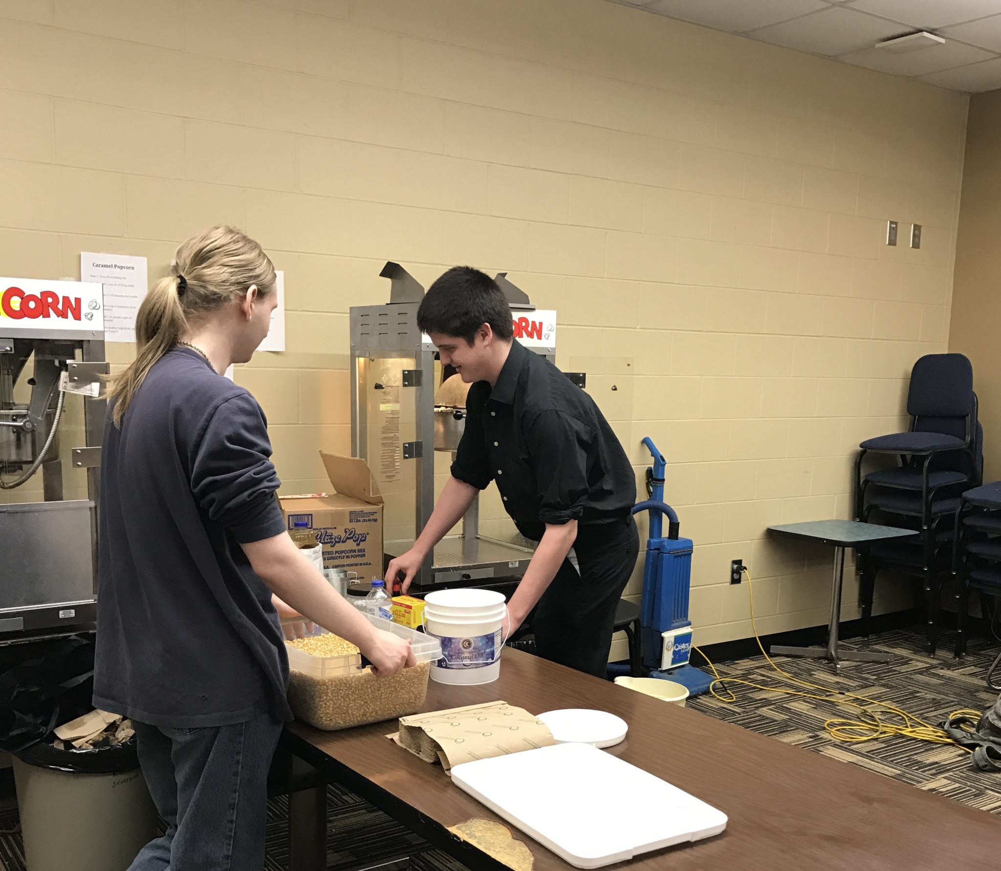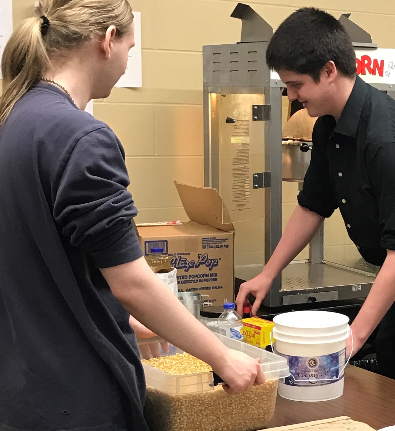Hannah Haisman conducts some popcorn business in the VSHS entrepreneurship classroom.
