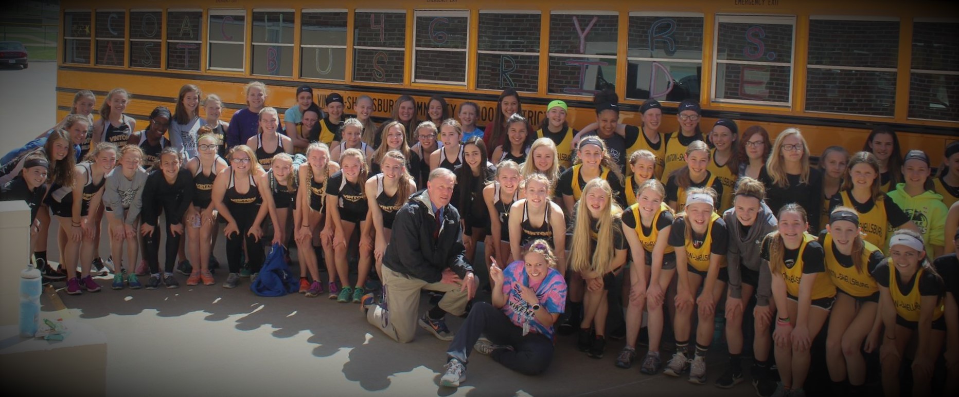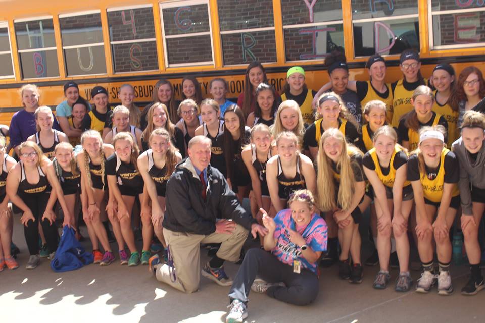 VS Middle School track coach Don Lyle received recognition from his athletes and others on Friday. The team painted bus windows and decorated inside of it, in honor of his last ride with them. He plans to retire from coaching and teaching at the end of the school year.