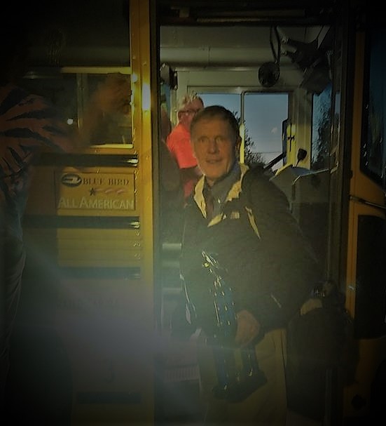 A fellow coach captured a photo of Mr. Lyle coming off the bus holding that trophy.