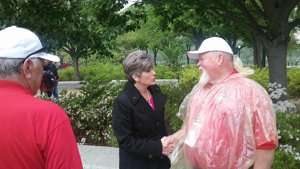 Vietnam veteran Craig Streeter of Vinton receives words of thanks from U.S. Senator Joni Ernst during the most recent Honor Flight. Streeter was among the many Vietnam veterans who were insulted or spit on when they returned from serving there.