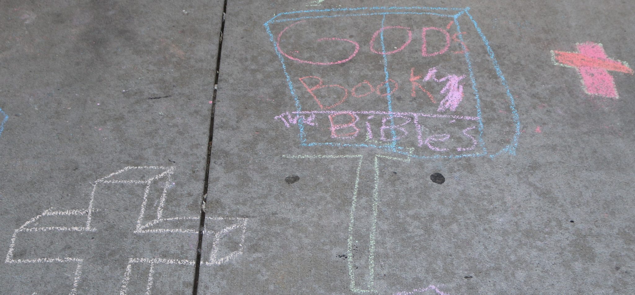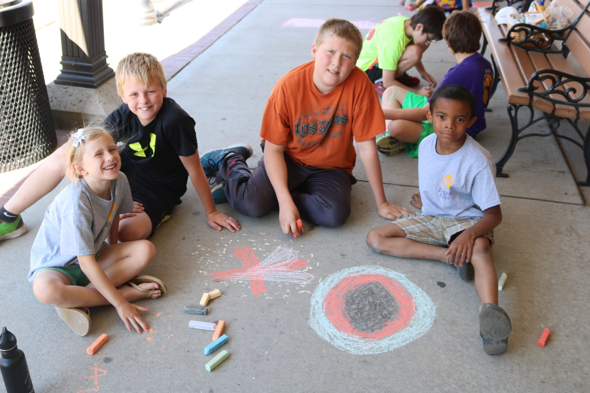 - Children "chalked the walk" downtown, leaving positive message of faith for shoppers to read on the sidewalk