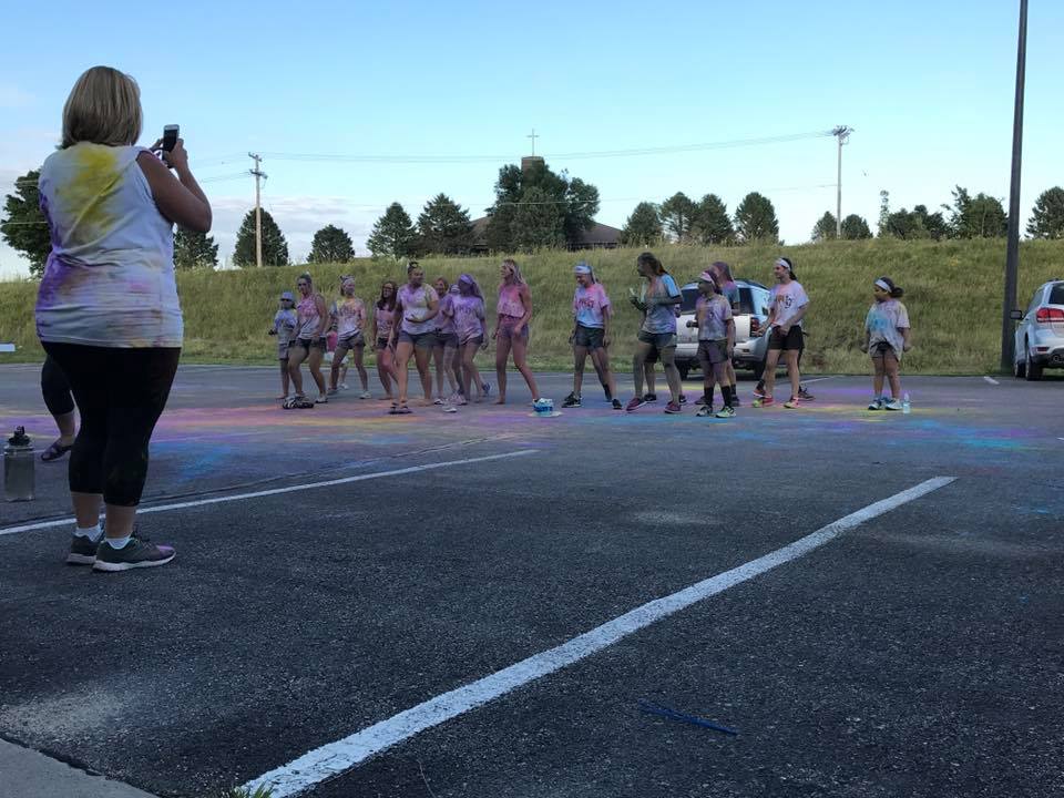 The Color-A-Thon took place at the high school, where runners and spectators added powdered color to their shirts (and faces!) during the event.