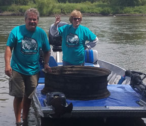 Over 42 volunteers took to the water in boats, canoes and kayaks as well helping on the ground with transporting vehicles/trailers, putting lunch together and sorting the treasures brought in. There were some familiar faces that have been with us since the first project and there were some new faces that wanted to see how they could help.