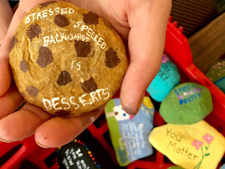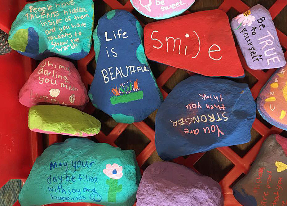 Kindness Rocks: Renee Gram, left and Caroline Erickson have been painting inspirational messages to share with all of Garrison.