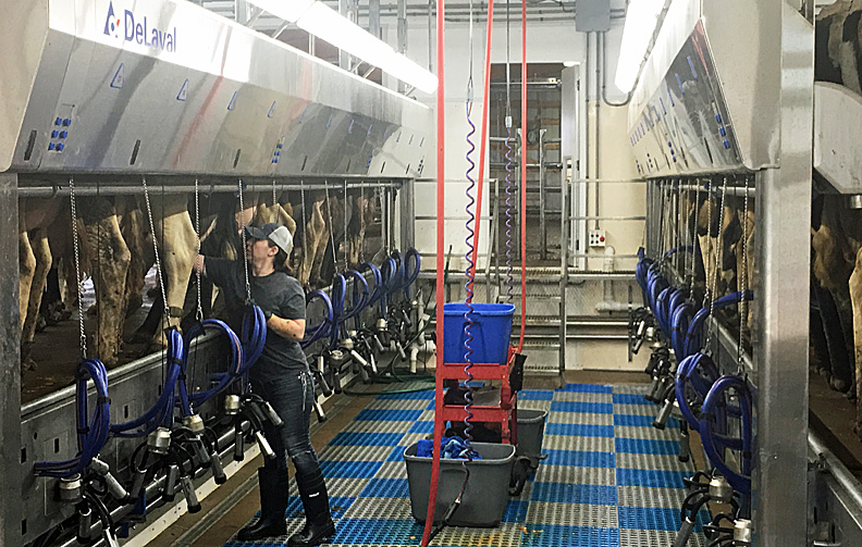 Kayla Connor prepares to milk some of the Vinbana Dairy's cows a few days after the facility opened.