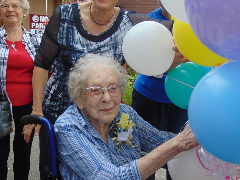 Florence Meyer's 100th birthday celebration included releasing that many balloons.