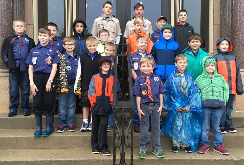 Vinton Scouts gather at the courthouse for a photo on Saturday, the day they collected the Scouting for Food bags.