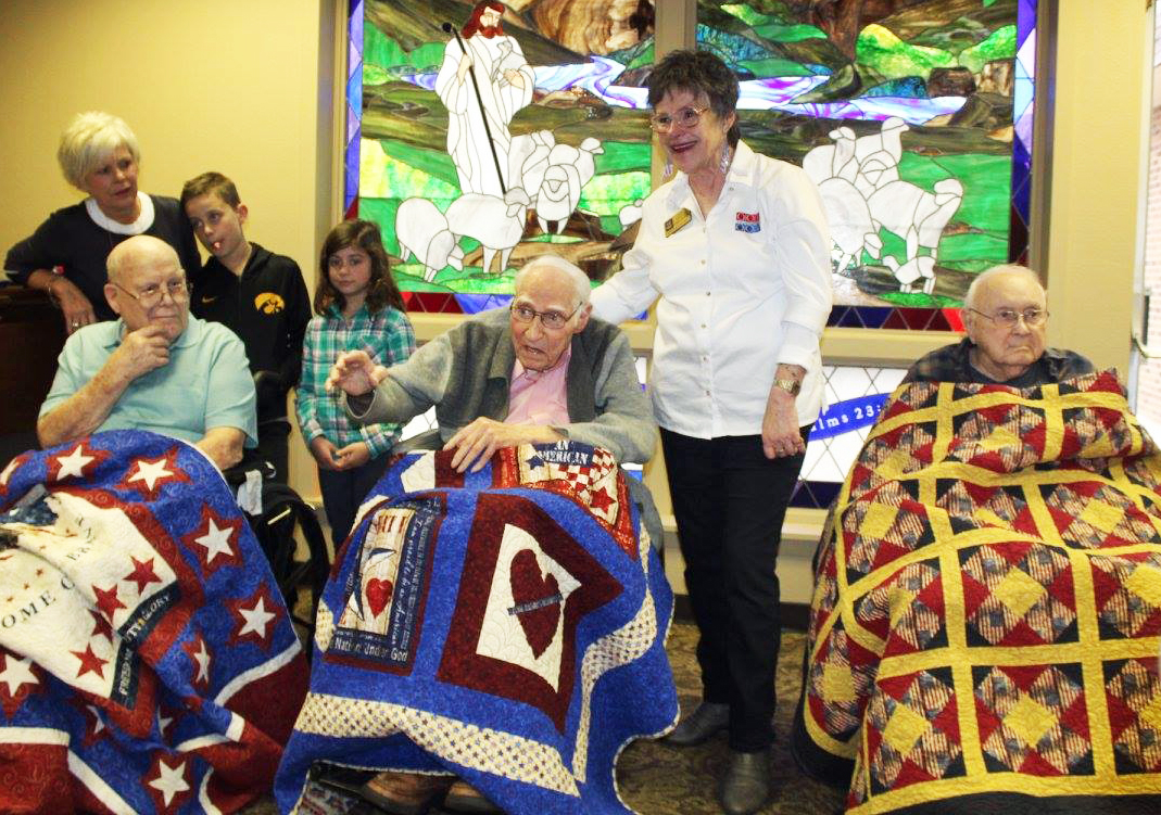 "They don't want to brag," said Elayne Gassett, one of the area Quilt of Valor leaders, of the three veterans who received a quilt Saturday at the Vinton Lutheran Home.