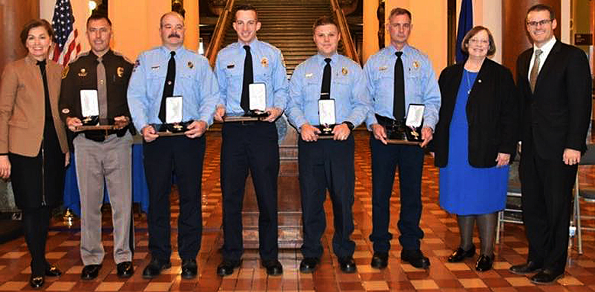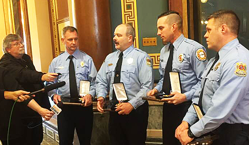 Along with the Marion firefighters, Iowa State Patrol Trooper Henningsen received the Award of Valor for rescuing a man trapped in a burning vehicle in a ditch in near Bettendorf in February.