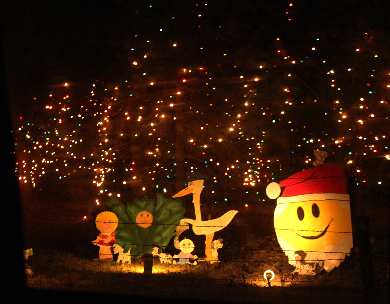 But eventually we get to Center Point, and head north of what the oldest granddaughter calls "McSubway," the convenience store that has both restaurants. We go north a few miles until we se signs pointing right and directing us to turn our FM radio dials to 97.1 so we can hear the music that accompanies the lights.