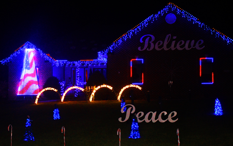 We spent nearly a half hour there, watching the several different songs that play while the Maue yard (and the rest of the neighborhood) lights up in a variety of carefully timed flashing lights.