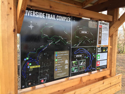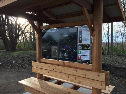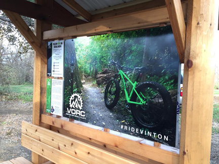 The Vinton Off Road Cyclists recently finished up a significant project, thanks to a grant from the Vinton Community Foundation. A trailhead kiosk was installed at the Riverside Trail Complex (north of Lions Field). Ground was cleared to pour a concrete pad and erect a structure complete with benches and a small roof overhang. The kiosk is doubled sided to provide the maximum amount of information. Information printed on the panels includes a detailed map of the Upper and Lower trail, rules to ride, an explanation of the emergency location system and an overview of the VORC group. "The kiosk is just one more step to having our trail system be a destination for not only local residents but also visitors from other towns" President, Matt Phippen, commented. Some landscaping around the kiosk is in the plans for Spring 2018.