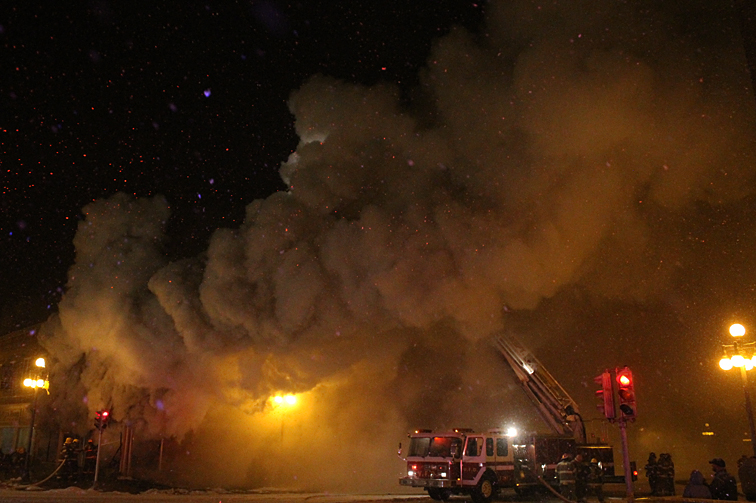"Fire has reached Bob's office," Linda Fischer wrote at around midnight, as the flames began attacking the Fischer building, and smoke poured out of an upstairs window. Witnesses also reported seeing the collapse of a rear wall and the second floors of one of the structures.