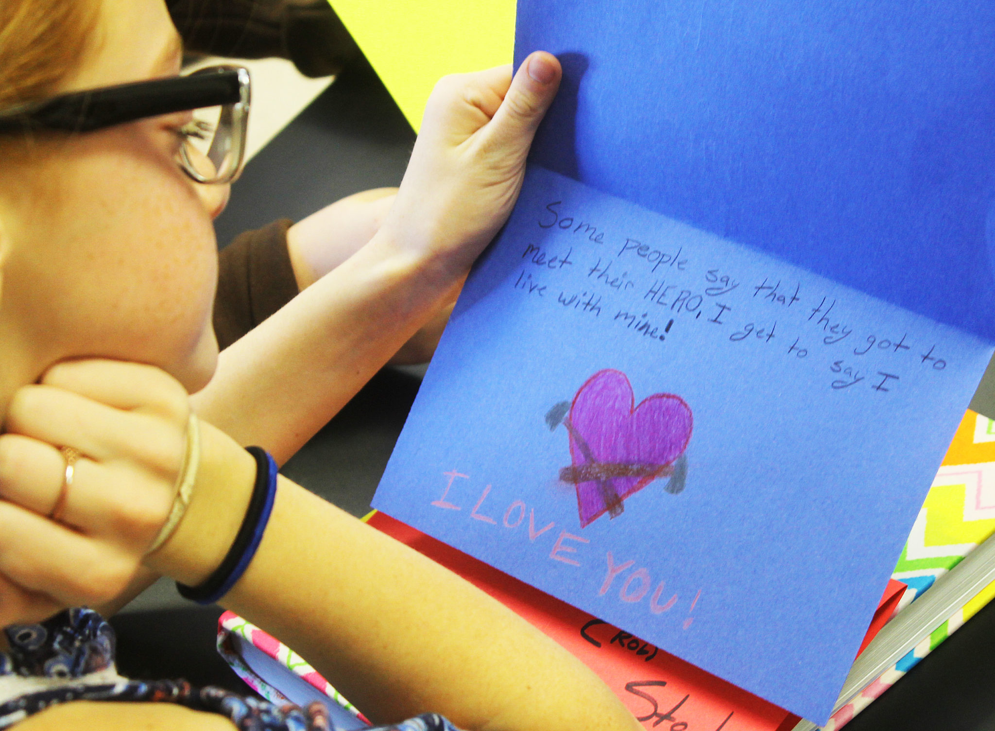 One of the students involved in the project is Brynn Staab, whose dad, Chris, was there 22 hours, said the teacher. Brynn wrote a comical note addressed to "Old Man," a VFD firefighters who frequently teases her. She also wrote a serious one to her dad, writing: "Some people say they got to meet their hero. I get to say I live with mine."