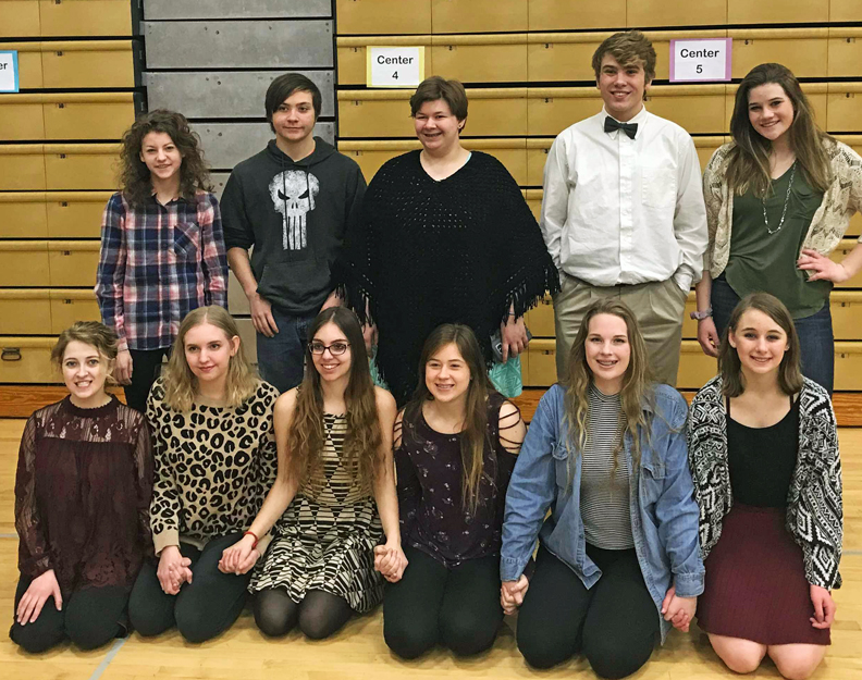 These are just some of the Union speech students who competed in recent events. In front from left to right are Isabelle Werner, Maddy LeRoy, Autumn Kies, Meghan Klein, Sophie Selk, Abby Johnson. Back row is Kylea Neuendorf, Gabe Hines, Libby Sauer, Riley Davis, and Grace Johnson.