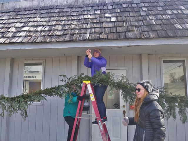 Area Vinton-Shellsburg students decorated local businesses greenery on Saturday, preparing the city for its first Christmas events of the season. The greenery project is a fund-raiser for GOVS, the VS scholarship program.
