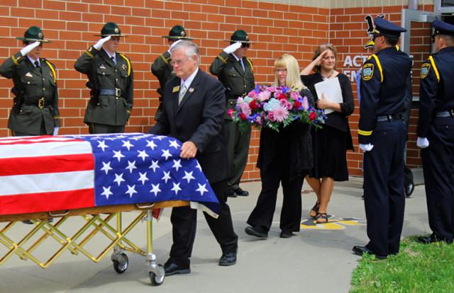 The procession to the cemetery was filled with patrol cars from several area police departments.