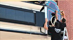 The Palace put a fresh look on their marquees this summer. Scott Tharp and Beau Wood of Tharp Design put up new digital panels and did the painting.