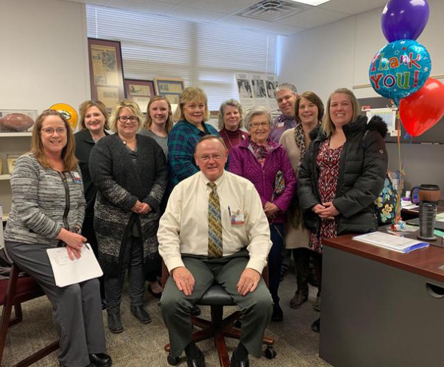 Mike Riege, Virginia Gay Hospital's Administrator of 29 years was ambushed by Vinton Unlimited on Wednesday afternoon.
