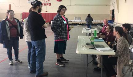 A large group arrived from the airport of about 80 and were processed at the school gym in the afternoon on Wednesday.