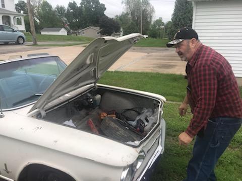 So of course, after we returned in the truck, he asked, "Do you want to go for a ride in the '63 Corvair?" and realizing this had been more fun than I had anticipated, I quickly agreed. Telling me that his brother Ray has a '68 Corvair, I made the mistake of commenting that I didn't realize Ray was a car guy. With a chuckle, Don laughed at that. "Let me show you Ray's garage." So being the typical brother, we drove to Ray's and check out the cars in his garage, without as much as a "do you mind?" (but hey, they're brothers and brothers are fine with that, at least I think so, if not Don can expect to now be in big trouble!) After wheeling and dealing with his brothers, Ray, and brother Cliff, Don ended up with Ray's '69 Corvair which he calls his "rat rod". He jokingly lamented that there isn't any rust or holes in the floor pan so he isn't sure how he'll get the water out of it from the leaking roof.