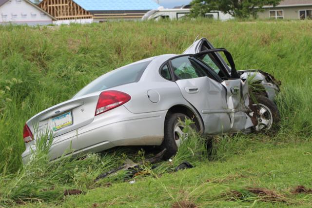 Sunday evening, a vehicle traveling southbound in the 1600 block of South 10th Avenue lost control turning left to continue on to 61st Street Lane when it ran off the travel portion of the roadway.