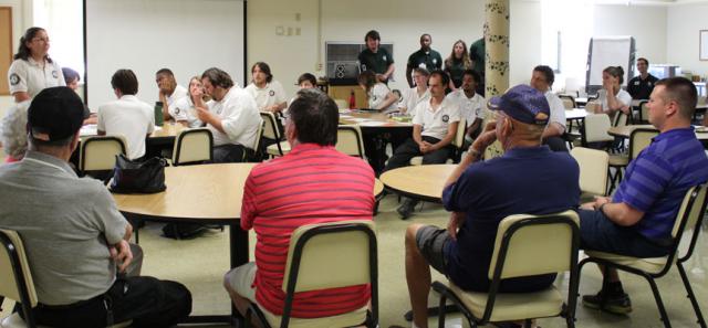 Local Veterans met with the groups that will be going to Louisville at an informal meeting on the AmeriCorps campus Sunday evening. Before the Veterans introduced themselves, Rob Levis, the Region Director at Americorps NCCC and also an Army Veteran explained that while the group would be at the games they would see a lot of friendly camaraderie between the branches. He then explained that "you have the Army and all of the other branches that exist to support the Army," which was met with laughter from the other Veterans in attendance.