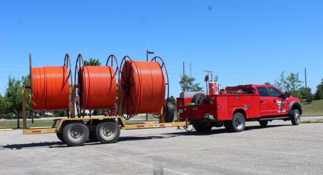 There are several people working at boring and trenching the new conduit into the ground for our iVinton project. The boring has been going on in the north side of the street across from the Vinton Shellsburg High School, as well as areas between the skate center and Kiwanis Park. You can see the ends of the orange tubing peeking through the ground waiting to house the fiber that will hopefully run to all of your homes!