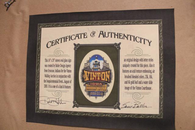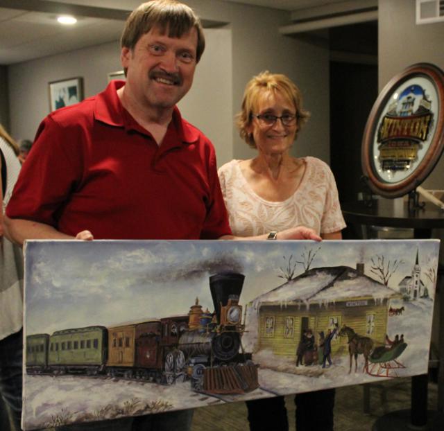 The most prized auction item of the night went to Mike and Cindy Elwick who went head to head in a bidding war with Mona Garwood over the oval presentation piece commemorating the Sesquicentennial celebration. The gold leaf piece sold for a whopping $1,850 the highest bid of the night. Several of the other pieces available were sold around the $500 price tag, a few for less.
