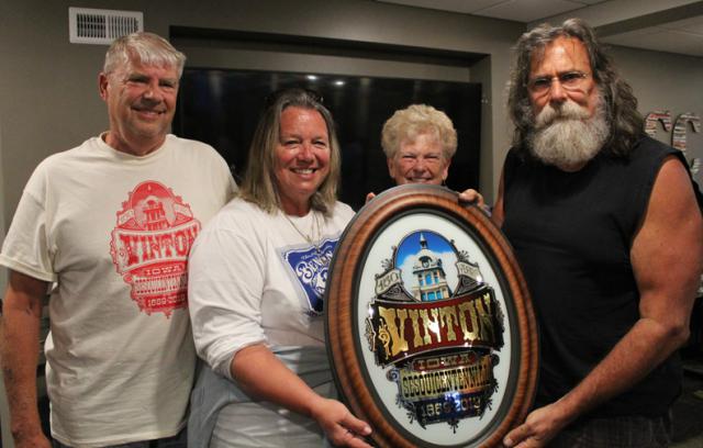 The mural of the depot was painted by artist Bill Masters back in 2000 and he requested to repaint it again this year. The depot mural was one depicts a photo of Presidential Candidate of Howard Taft who made a whistle-stop in Vinton. This mural was one of the murasl that didn't fair well, but painting techniques have changed for the better over the course of the last 19 years. He also created a smaller version of the depot which was won by Ray and Carol Knoff.