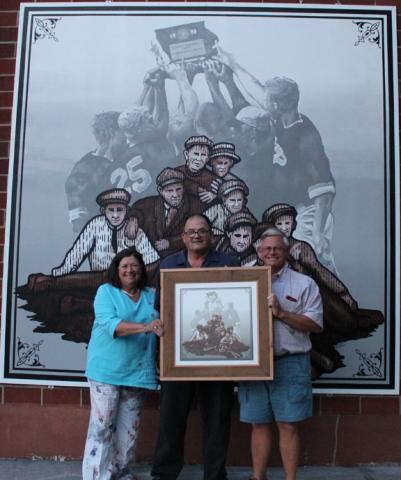 On Saturday, the Vinton Country Club was the site for one of the final opportunities to celebrate the completion of an amazing mural project in Vinton! The artists from the Walldogs project, who designed & painted our latest murals were in attendance as the auction piece miniatures of the murals downtown were awarded to the highest bidder. Joel Schmitz auctioned off the pieces.