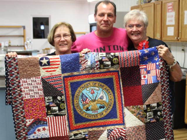 Sandy Driscol and Vicki Streeter sewed quilts for each branch of the military, drawing a name from each of the branches of the people that were present. The quilts all had the symbol of the branch they represented in the center, as well as blocks that were designs specifically for that branch of the military.