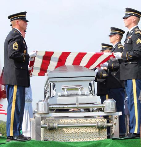 As the procession moved to the cemetery, every heart swelled with pride as the procession passed flag after flag, on the light poles, and in private yards along the route. Many of the residents saluted or stood with a hand over their heart as the casket passed by.