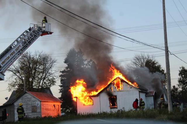 Last night the Vinton Fire Department held a practice burn at a house located on 3rd St. The property is owned by Al Garwood who obtained the proper permission to have the home burnt down.