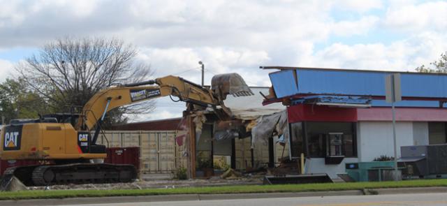 Monday was a long day for those tasked with taking down the former Hardee's building. It was thought that the building would be taken down weeks ago, but with anything, there was a hold up with approval from the DNR for removal of the debris from the old building.