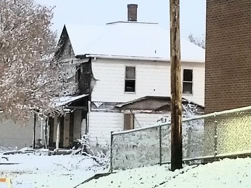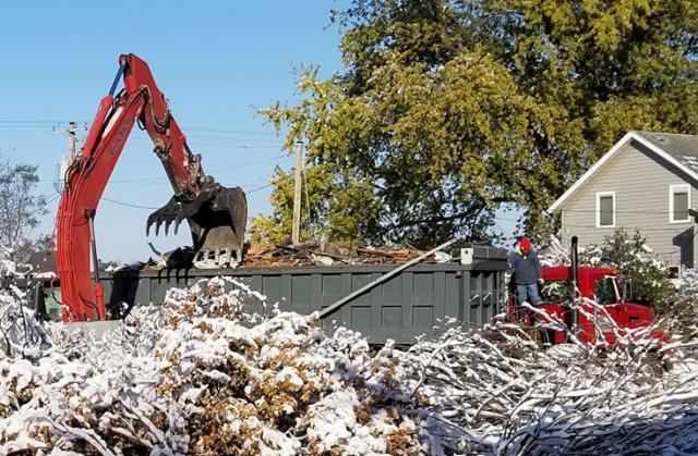 The Shellsburg house damaged by fire back in August, is being torn down today.