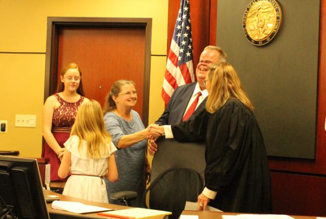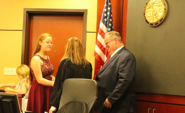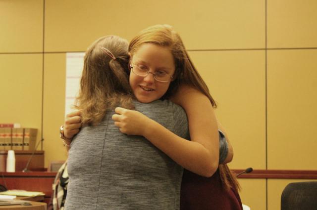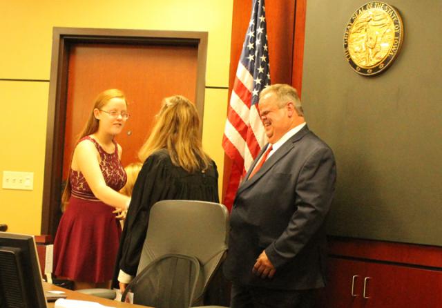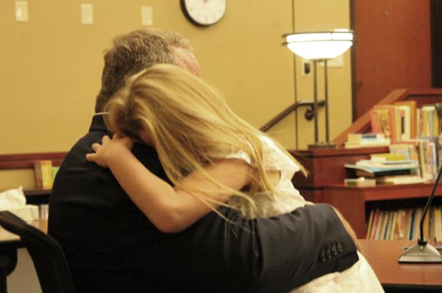 As the family entered the courtroom and settled in for the proceedings, Judge Barbara Liesveld put them at ease inviting the two girls to sit at their own table if they chose to "Just talk into the microphone." Eagerly jumping into a chair at her own table, Darla, was quick to use the microphone.