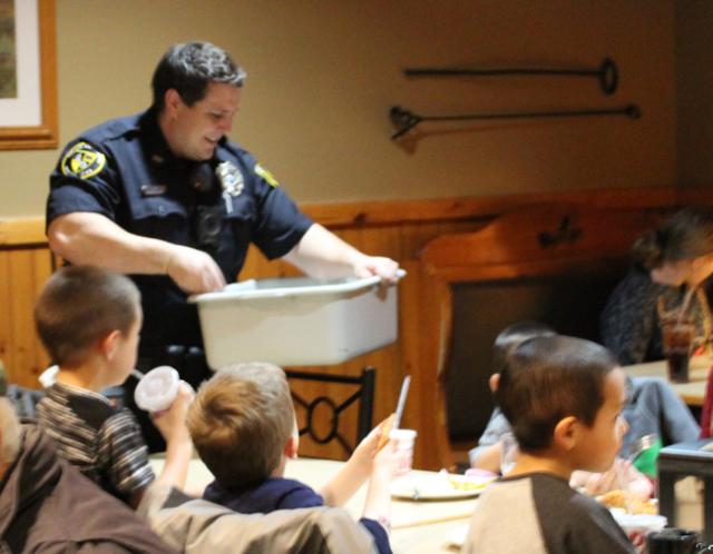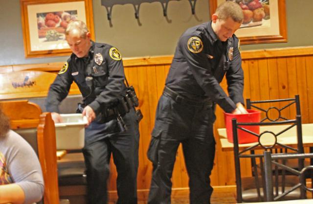Several officers took some time out to assist busing tables and visiting with area residents on Wednesday evening.